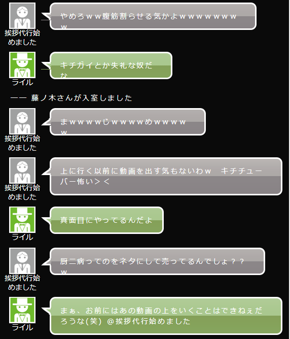 荒らし方は串を使った入室不可回避・手動の連投・成りすまし