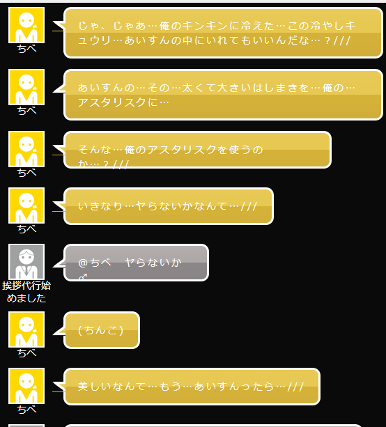 一度青酸カリというHNを使ってマノのカオス部屋に入りドッキリを仕掛けたことがあった マノは見事にあいすんと間違えて騙されてた その後のちべさんがどうなったかは…誰も知らない(ペロッ